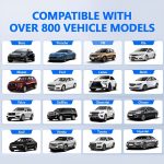 Compatível com mais de 800 modelos de veículos e suporta dispositivos iOS 10+ e Android 11+, tudo num design compacto que se integra em qualquer painel de bordo.